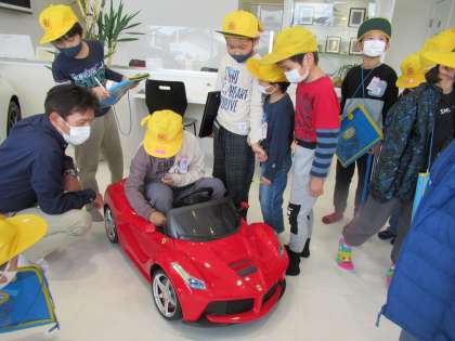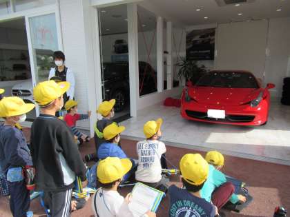 タナベオートさんに行きました。高級車を見せていただいたり、お仕事についてのお話を聞かせていただいたりと、車好きの子供たちにはたまらない素敵な時間になりました。