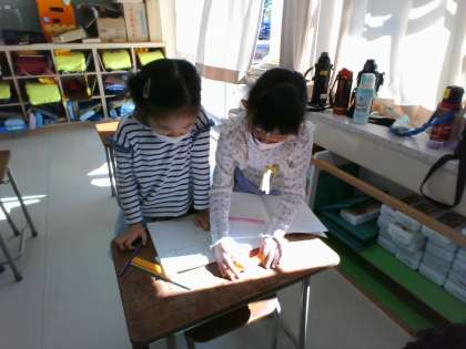 自分の考えをノートに書いたり、ブロックを動かして説明したり、友達と伝え合うことが楽しいようです。