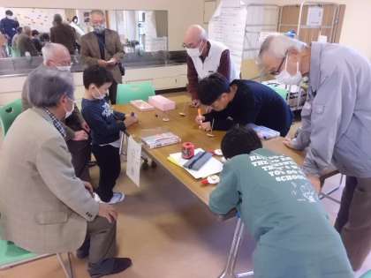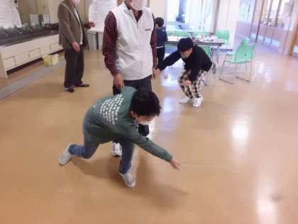 11月7日(月)地域の長寿会の方とふれあい集会を行いました。25名の子供たちはそれぞれ「むかしの遊びチーム」「ブーメランチーム」「こまチーム」等、好きなものを選び、挑戦しました。長寿会の皆様の優しく丁寧な教え方に、どの子も笑顔いっぱいで意欲的に取り組むことができました。とても楽しい体験となりました。長寿会のみなさま、本当にありがとうございました。