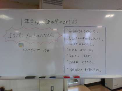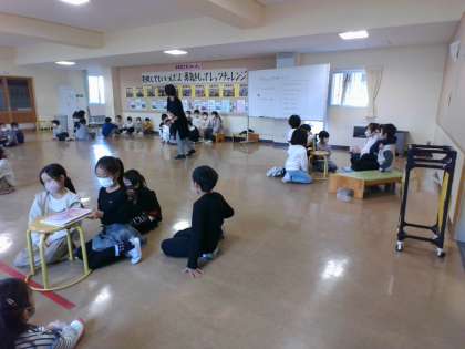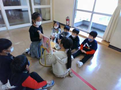 3年生の国語の授業の最後にある読み聞かせを、1年生にしてもらいました。今日は1組が招待してもらいました。3年生の読み聞かせに、1年生は笑ったり、真剣に聞いたりして、物語の世界を楽しんでいました。