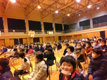 今日は、三遊亭良楽さんをお招きして、落語を見ました。子供たちは、巧みな話術に引き込まれ、大笑いしていました。教室に戻ってからも「すごく楽しかった」「また良楽さんに会いたい」と、落語の楽しさに目覚めていました。