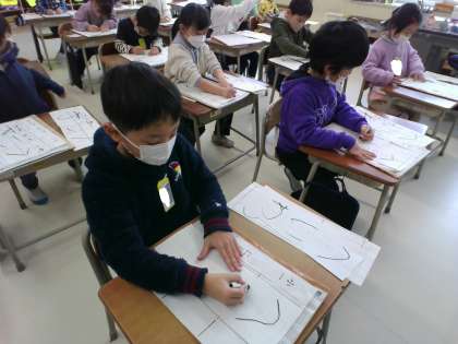1月に行う書き初め大会に向けて、練習をしています。