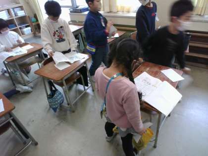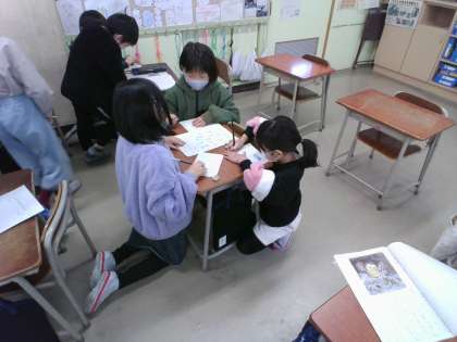 今日は、友達の作品を読み合い、感想を伝えました。「このシーンがワクワクしたよ!」という声が聞こえてきました。