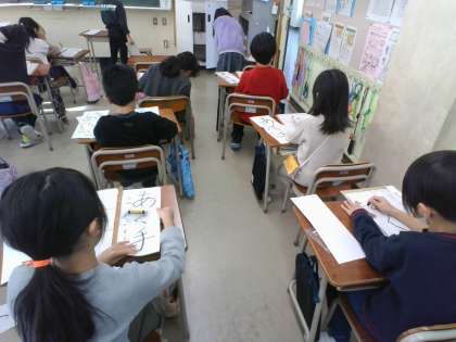 来年の書き初め大会に向けて練習をしています。