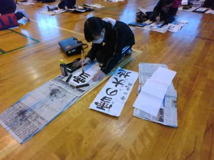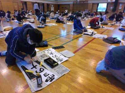 5年生は今日書初大会でした。