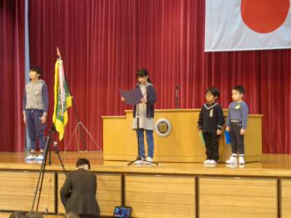 始業式では、児童代表の言葉として、6年生が3学期に頑張りたいことを発表しました。