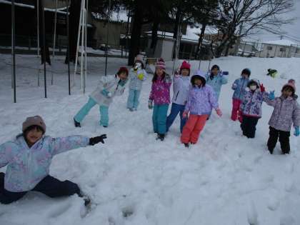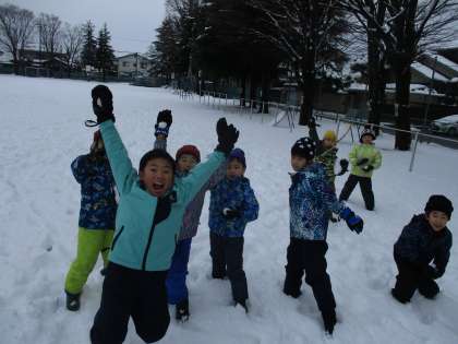 今日の朝、雪遊びをしました。そりを滑ったり、雪合戦をしたりと冬の自然を楽しんでいました。