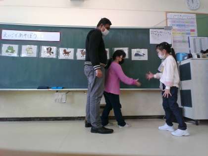 3年生から始まる外国語活動ですが、1年生も体験をさせてもらいました。