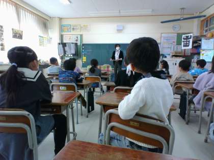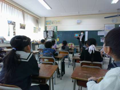 今日、富山市立図書館蜷川分館の司書の方に来ていただきました。各クラスごとにテーマを決めて、本を紹介してくださいました。このクラスでは「あな」をテーマにした本でした。自分では選ばない本に出会うことができました。たくさん本を読み、様々な世界を味わってほしいです。
