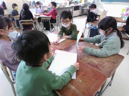 国語「たぬきの糸車」の最後の活動は、紙芝居づくりです。