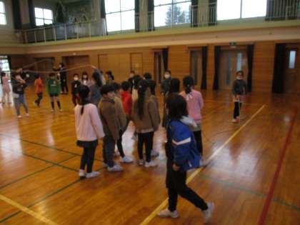 白銀タイムの様子です。来週のチャレンジタイムに向けて大縄の練習をしています。よい記録を残せるといいですね。