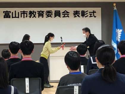 富山市教育委員会小・中学生表彰式に参加しました。