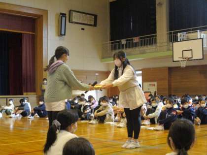 一つ上の代から受け継いだ児童会のバトン。子どもたちは、1年間最高学年として責任感をもって様々な活動に取り組み、今日の日を迎えました。