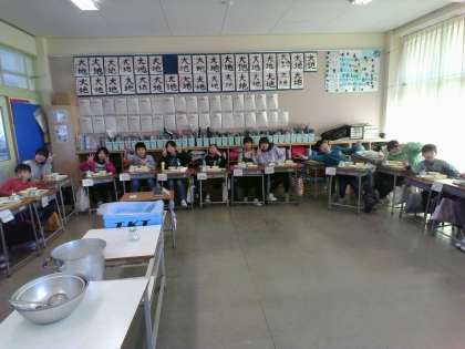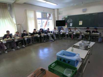 いつもは友達の背中しか見えない給食時間ですが、大きな輪になって食べることで友達と目が合い、嬉しい気持ちになりました。会話はなくとも、和やかな雰囲気に包まれていました。