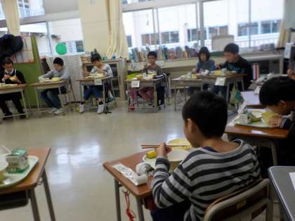でも、校内放送で6年生から担任の先生への最後のメッセージが読まれると、寂しくなって、しんみりしました。「ごちそうさま」と共に「今までありがとうございました」と6年生に伝えました。