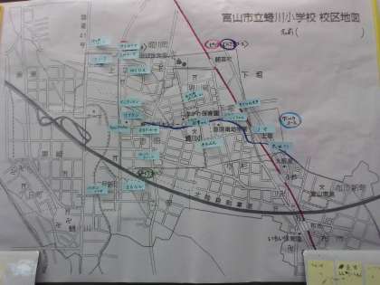 生活科で、校区について詳しくなろうと、おうちの人にも協力していただいて、お店や場所などを調べてきました。友達が発表した知らない場所も、グーグルマップなどで写真を見せると、「ここか!」と知っていることも多かったです。学習を進めて、さらに地図を埋めていこうと思います。