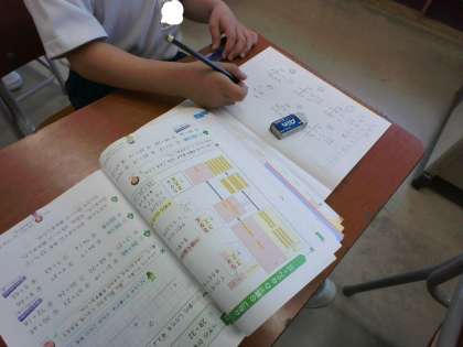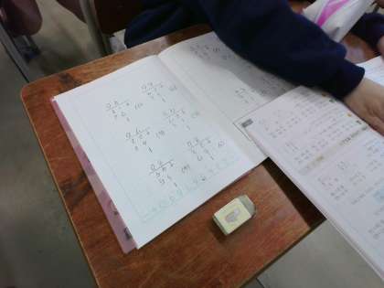 位を縦に揃えること、一の位から計算することを守って、ミスなくできるように真剣です。