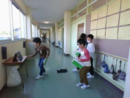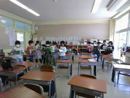 クロムブックで自分たちの音読の様子を録画して、振り返りをしています。動画をチェックして気づいたことを、さらに音読の工夫につなげています。