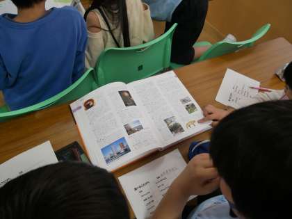 図書オリエンテーションがありました。学校司書の先生に百科事典の使い方を教えていただき、色々な事柄について百科事典を使って調べました。最後に本の読み聞かせもしていただき、本の貸し出しもスタートしました。進んで図書室を利用し、本に親しんでいくことを願っています。