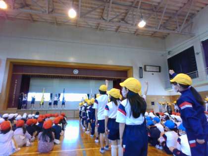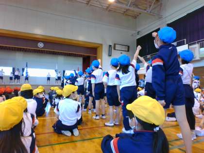 「おー!」と振り上げた手が力強く、運動会に向けて2年生も気合十分です。