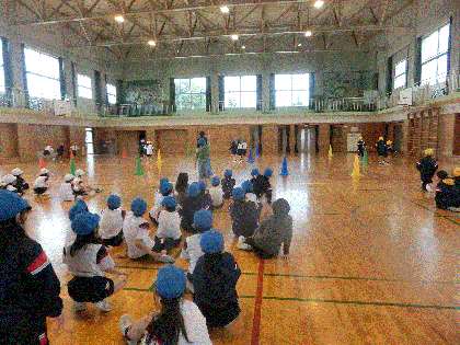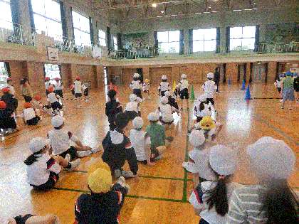 団体競技の練習を始めました。初めての競技ですが、すぐに内容を理解し、熱心に取り組んでいました。本番が楽しみです。