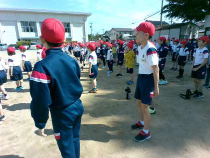 今日、運動会の応援練習がありました。6年生から、応援のダンスや、立ったり座ったりするタイミングを教えてもらいました。また、みんなで声を合わせるところは、随分そろってきたようです。