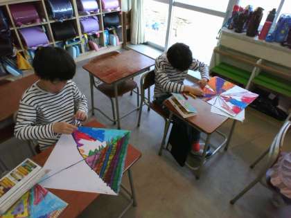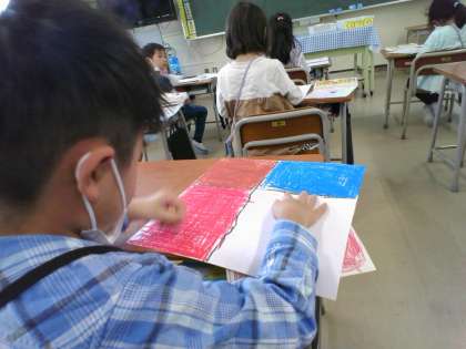 図工で「すてきなハンカチ」の学習をしています。素敵な柄や模様を考えて、オリジナルのハンカチを作成しています。どんなハンカチが出来上がるのか楽しみです。