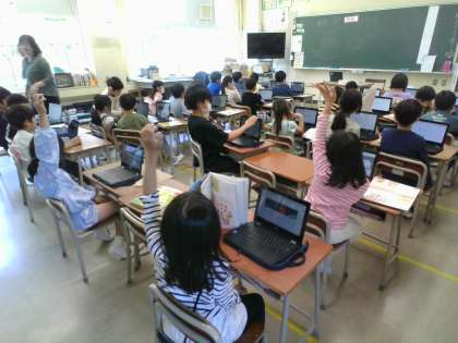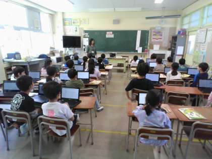 音楽科の学習で、自分たちの歌声を録音するために、クロムブックを使いました。