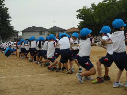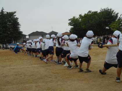 今日は運動会でした。2年生は綱引きを行い、子供たちはみんなで力を合わせて一生懸命に引いていました。また、いろいろな学年の競技も力一杯応援しました。