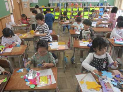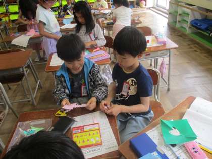 昨日の図工では、はさみで折り紙を切り、紙飾りを作る学習に取り組みました。早くやりたい!と意気揚々に作り始め、一緒に作品の工夫を考えたり、友達同士で見せ合ったりして楽しみながら取り組んでいる様子でした。