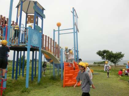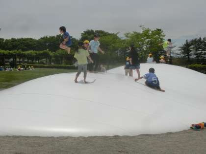 ミラージュランドで5枚のチケットを使い終わった子供たちは、冒険広場やふわふわドームで遊びました。この時間も楽しかったようです。