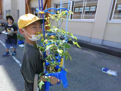 週明け、登校した子供たちは休みの間に育った野菜の話題でもちきりでした。
