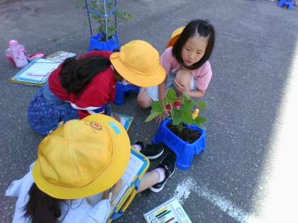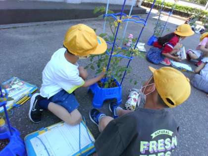 実が大きくなっていたり、花が咲いていたり、背丈が大きくなっていたり、嬉しそうに教えてくれました。
