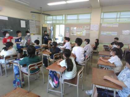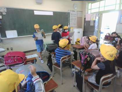 朝の会や帰りの会に子供たちは、社会科で学習した47都道府県についてクイズを出し合っています。地図帳にある色々な情報から自分たちでクイズを考えたり図書室から借りてきた本を参考にしてクイズを出したりしています。クイズを出す方も答える方も一生懸命考え、楽しい時間になっています。