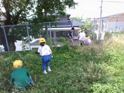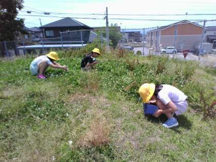 草むらの中や、木の幹、教室の黒板等、いろいろな場所で楽しそうに写真を撮っていました。