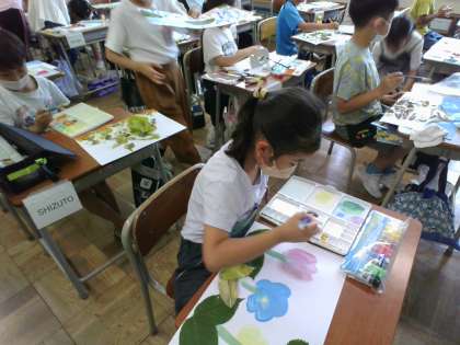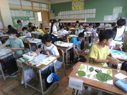 葉っぱを貼りながら想像したことを絵で表し、素敵な作品に仕上げていました!