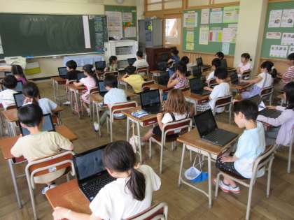 一人1台端末クロムブックを使う練習がスタートしています。何度か練習するうちに、すらすらとパスワードを打ち込めるようになりました。時間を見つけてAIドリルを楽しんでいます。
