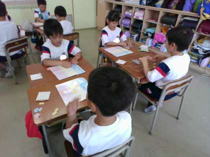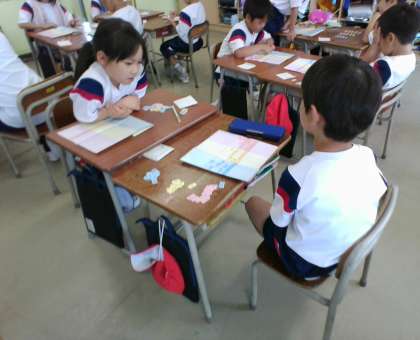 数のカードを使って、位取りをしたり、数を読んだりしました。友達とゲーム感覚ですると、楽しく覚えられるようです。