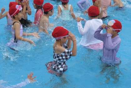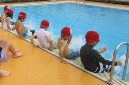 1年生のプール使用日は雨予報が多く、朝から空を見ながら「今日はプールに入れる?」と聞きにくる子供たち。やっとやっと入れました!とても楽しみにしていたようで終始にこにこでした。これから安全に楽しく水遊びをしていきたいと思います。