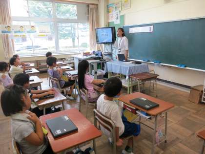 今週から1学期末までに4日間、クロムブックの使い方を教えて下さる先生に来ていただいています。初日はキーの名前や、クロムブックを使うときに使用する用語、手書き入力の仕方など学びました。手書き入力で自分の名前を入力し、子供たちは「わ〜できた!」と大喜びでした。