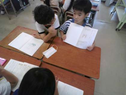 国語科「あったらいいな、こんなもの」の学習をしました。自分があったらいいなと思うものを想像して、友達に紹介しました。質問をしながら詳しく友達の話を聞くことができました。