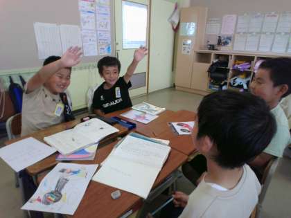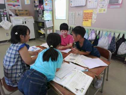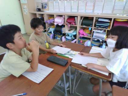 国語で、班ごとに発表会をしました。質問がたくさん出て、とても盛り上がりました。