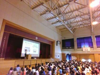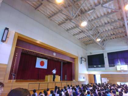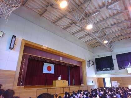 7月24日(月)体育館で、離任式、終業式、夏休みの過ごし方のお話がありました。