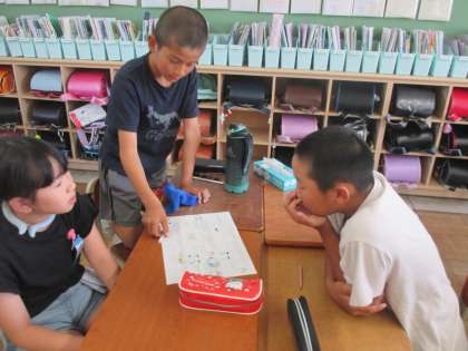 教室に子供たちの元気な声が戻ってきました。始業式の後は、宿題を提出したり、夏休みのことを話し合ったりして過ごしました。最後に、夏休みすごろくをして、盛り上がりました。