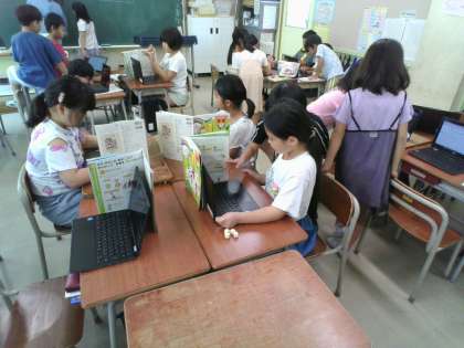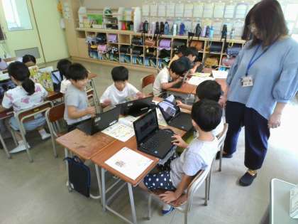 音楽科の学習では、動物や乗り物の音を声で表すという表現活動をしました。クロムブックを活用し、自分の声や友達の声を聞いたりして、よりよい表現の仕方を考えました。