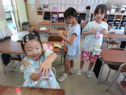 係のイベントに向けて、せっせと準備をしている子供たち。