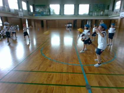 体育の時間には、楽しく体を動かしています。「ねことねずみ」ゲームをして反射神経を研ぎ澄ませて走る力を鍛えています。またドッジボールも行いました。今日は王様ドッジボールにも挑戦し、いろいろなルールで楽しんでいます。