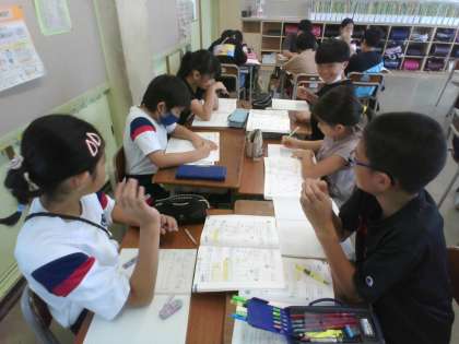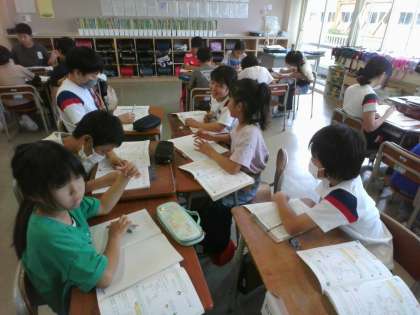 子供たちは、算数科の学習で「わり算の筆算」について学んでいます。今日は、グループの仲間と教え合いながら学習を進めました。計算練習にも意欲的に取り組んでいます。