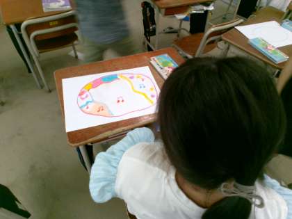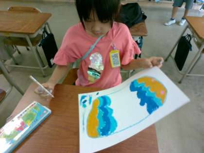 図画工作科の時間に「ゆめのたまご」を描きました。クレヨンを使って、色や模様を工夫しながらみんなすてきなたまごを描いていました。