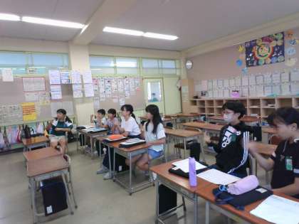 子供たちは、1学期に覚えた手話を使って自己紹介をしたり、ゲストティーチャーの方に質問したりしました。